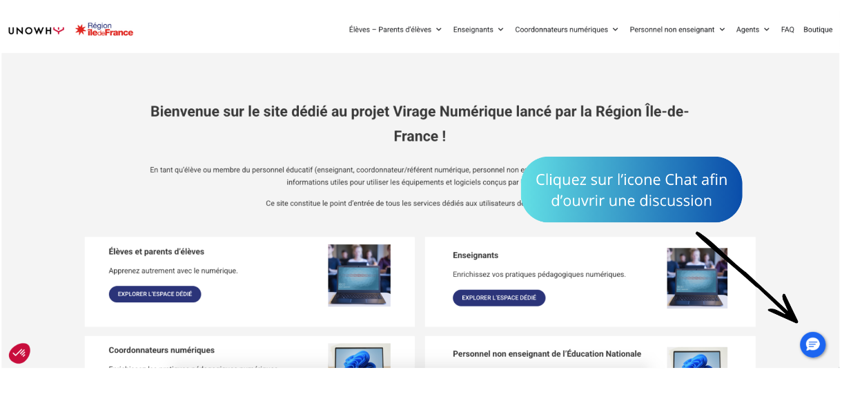 Etape 2 : Contact avec le support chat Unowhy